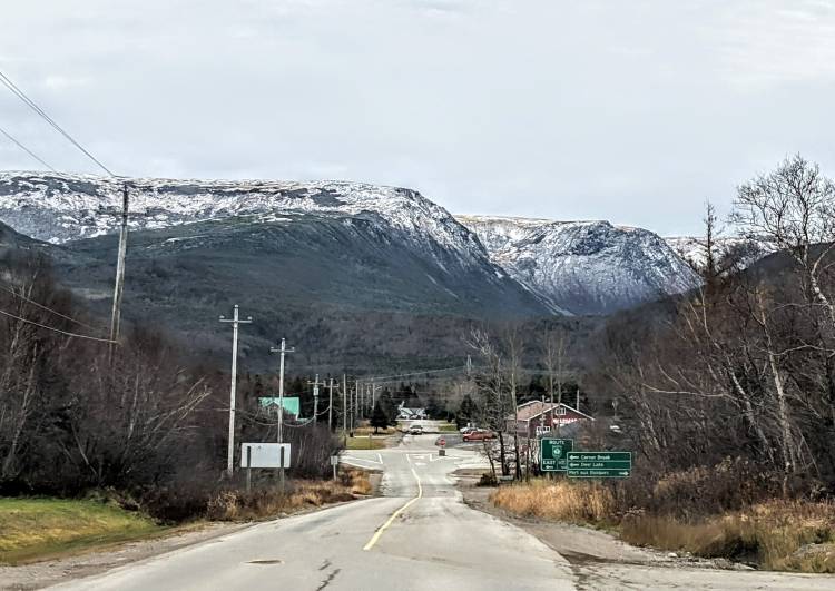 Experience Wildlife Birding Hiking Highway 406 connects to the TransCanada Highway with Long Range Mountains in the background.