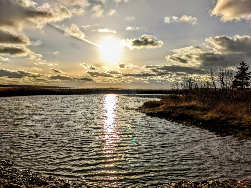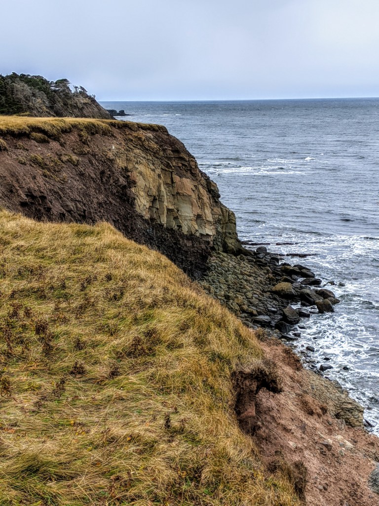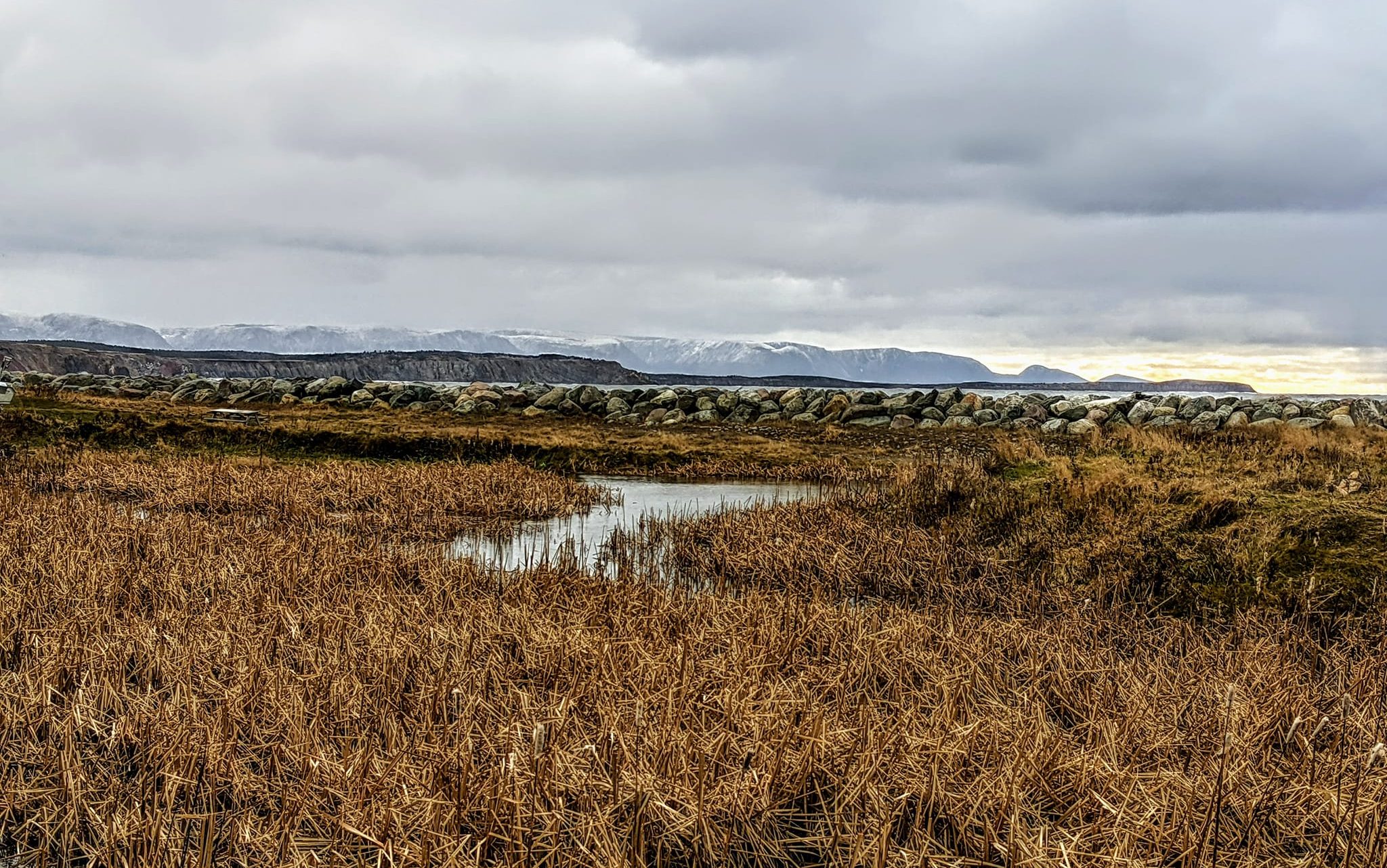 Hiking View of the Long Range Mountains & Point Rosee from Codroy Harbour. Along the shore at Codroy Costangs Trail Brooms Brook